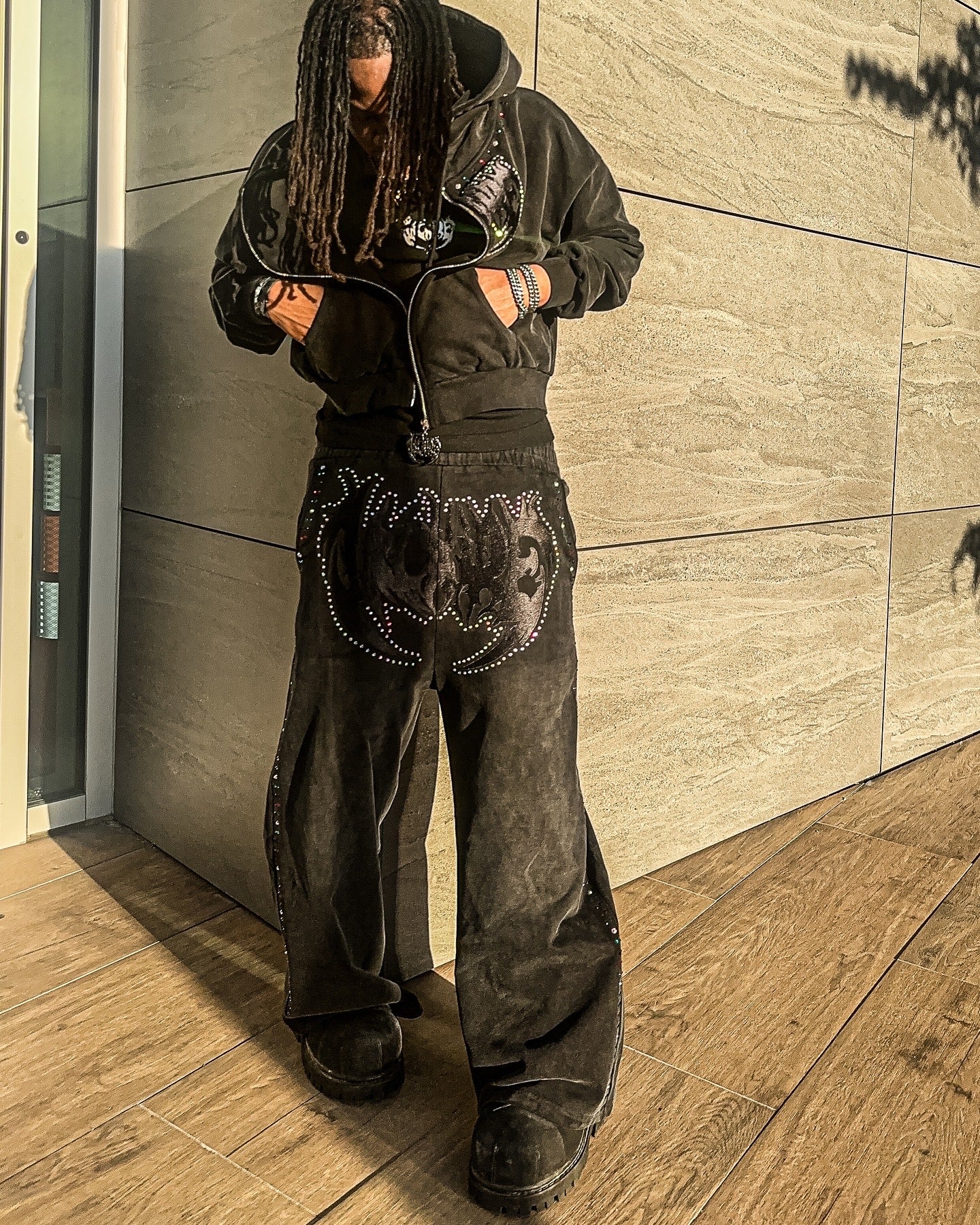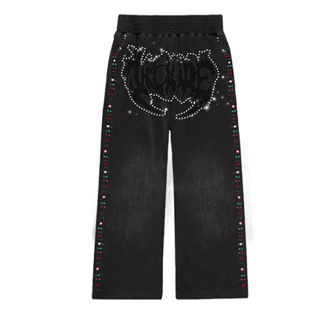 "ARCANE" [JET BLACK/ RHINESTONE] TRACK PANTS