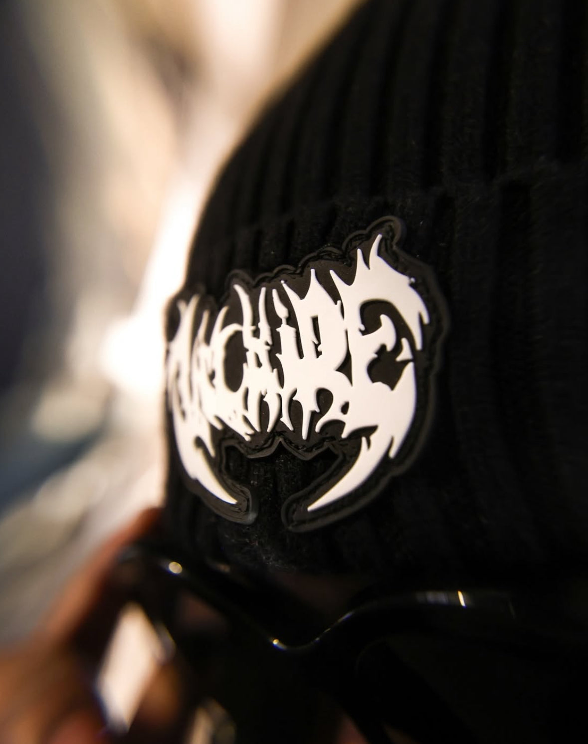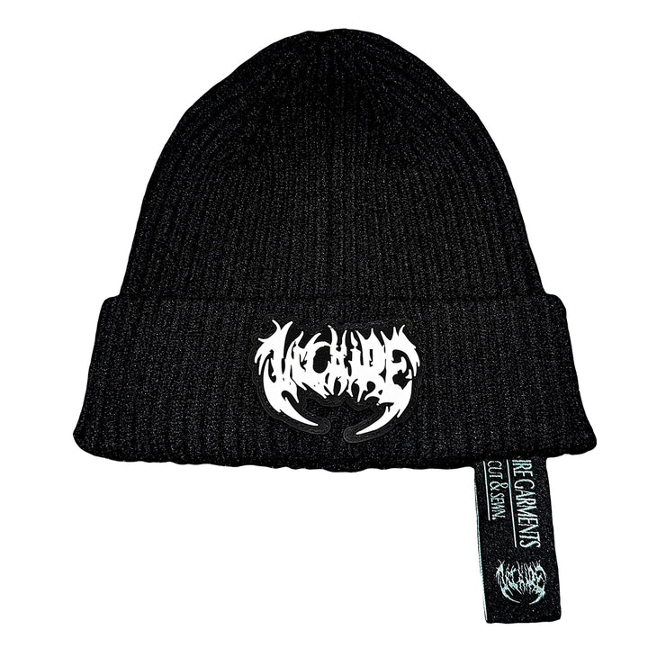 "ARCANE" KNIT BEANIE W/ RUBBER LOGO [JET BLACK]
